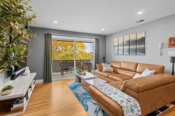 Top-floor 2-bedroom condo with attached heated garage and private balcony. The updated kitchen features cherry cabinets, granite countertops, and stainless steel appliances. Modern bathroom includes in-unit washer and dryer. Hardwood floors throughout. Central air conditioning. Each bedroom offers custom-built closet organizers. Formal dining room with exposed brick accent wall and recessed lighting in living and dining areas. Built-in TV media center in living room included. All appliances replaced in 2020. Private oversized 1.5-car heated garage plus two assigned parking spaces (C) and one additional driveway space. Building roof replaced in 2019; water heater new in 2020. No rental restrictions. Move-in ready and well maintained - an ideal home or investment
